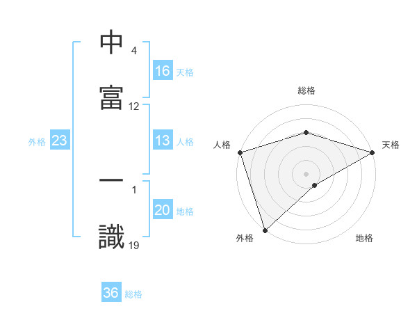 中富 一識さんの外格は23画の5点!