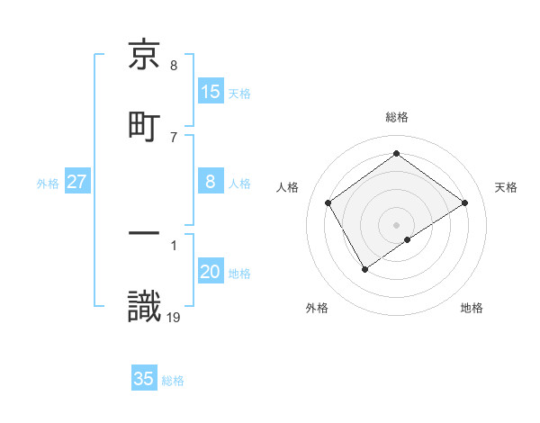 京町 一識さんの総格は35画の4点!