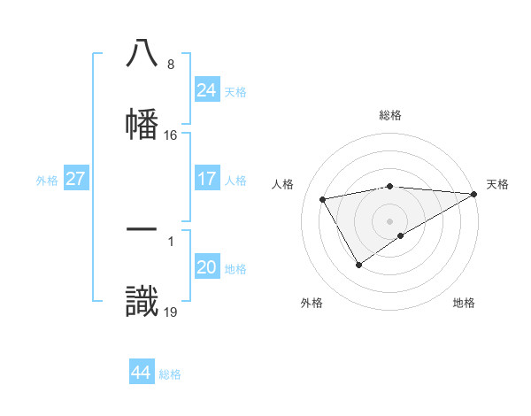 八幡 一識さんの天格は24画の5点!