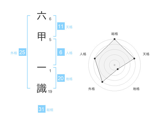 六甲 一識さんの地格は20画の1点!