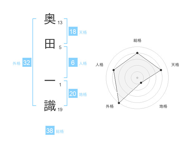 奥田 一識さんの総格は38画の4点!