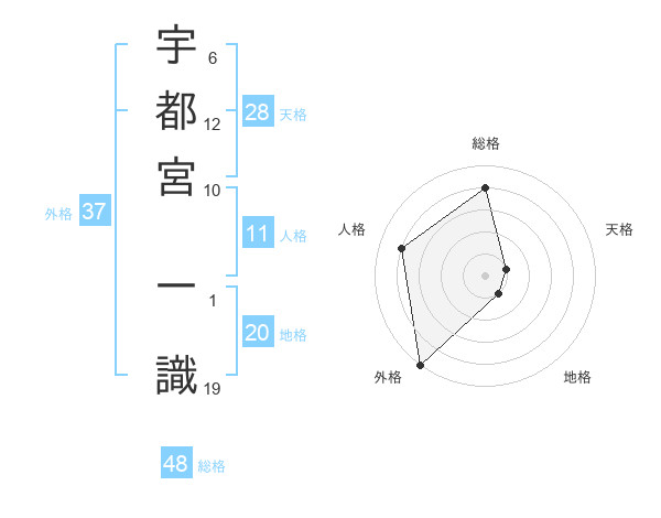 宇都宮 一識さんの外格は37画の5点!