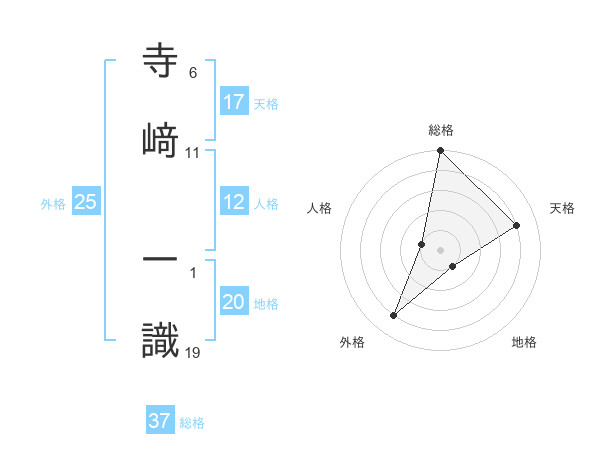 寺﨑 一識さんの総格は37画の5点!