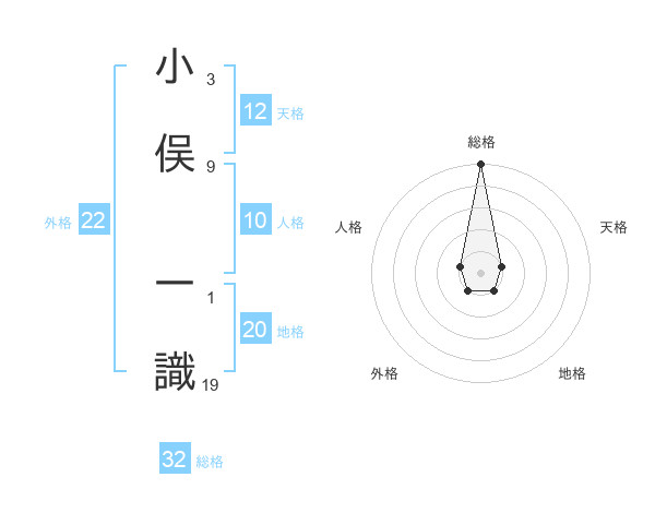 小俣 一識さんの地格は20画の1点!