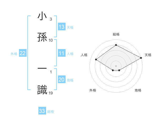 小孫 一識さんの天格は13画の5点!
