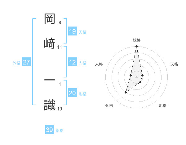岡﨑 一識さんを姓名の画数から五運を鑑定