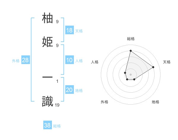 柚姫 一識さんの天格は18画の4点!