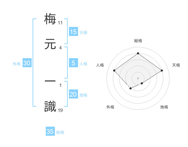 梅元 一識さんの総格は35画の4点!