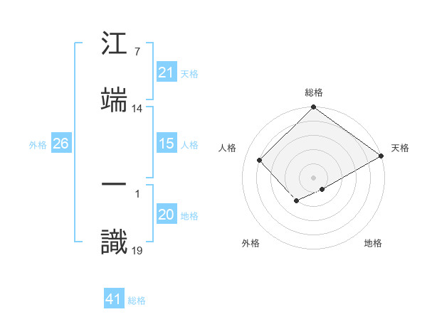 江端 一識さんの総格は41画の5点!