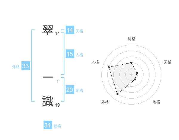 翠 一識さんの外格は33画の4点!