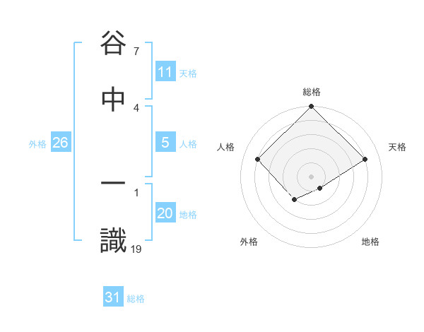 谷中 一識さんの総格は31画の5点!