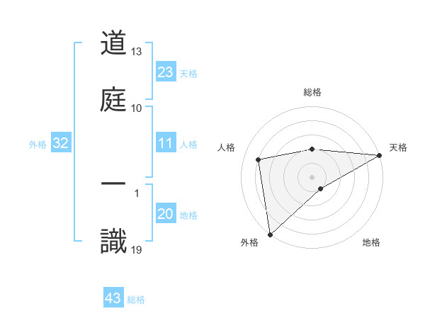 道庭 一識さんの天格は23画の5点!