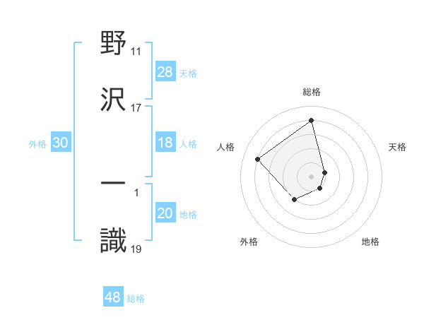 野沢 一識さんの総格は48画の4点!