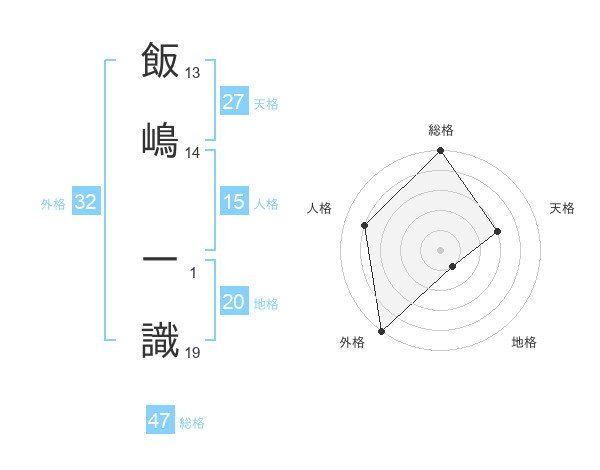飯嶋 一識さんを姓名の画数から五運を鑑定