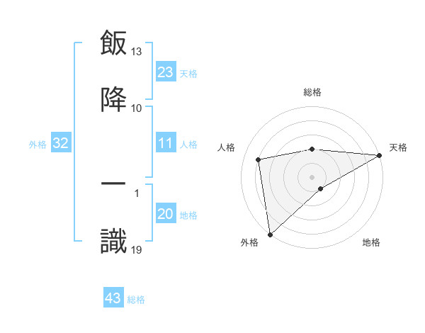 飯降 一識さんの外格は32画の5点!