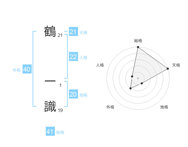 鶴 一識さんの天格は21画の5点!