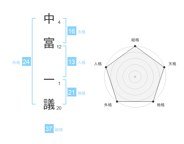 中富 一議さんの総格は37画の5点!