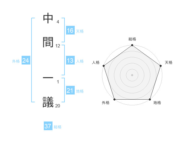中間 一議さんの総格は37画の5点!