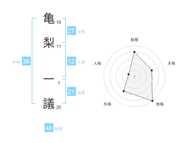 亀梨 一議さんの総格は48画の4点!