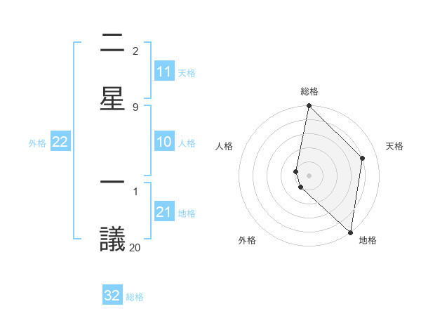 二星 一議さんの外格は22画の1点!