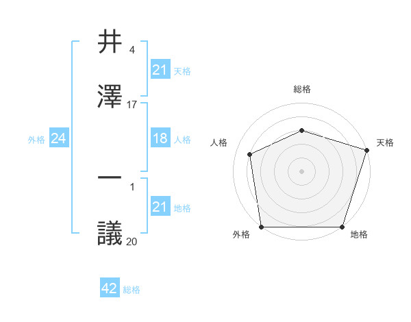 井澤 一議さんの天格は21画の5点!
