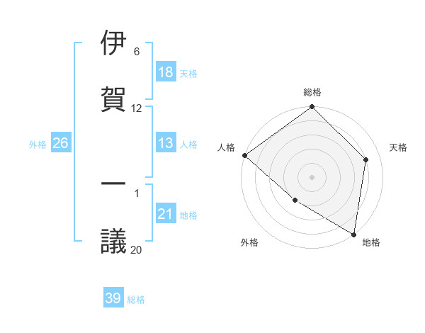伊賀 一議さんを姓名の画数から五運を鑑定