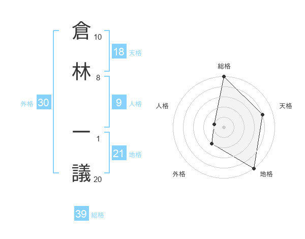 倉林 一議さんの総格は39画の5点!