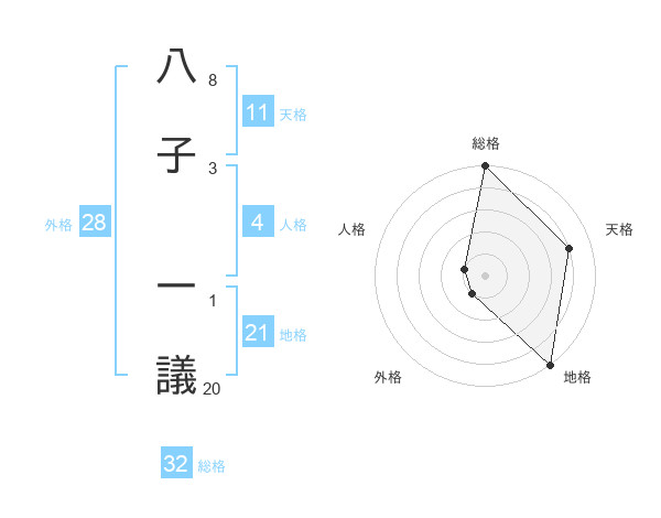 八子 一議さんの総格は32画の5点!