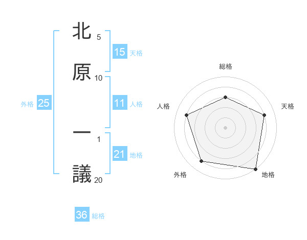 北原 一議さんの地格は21画の5点!