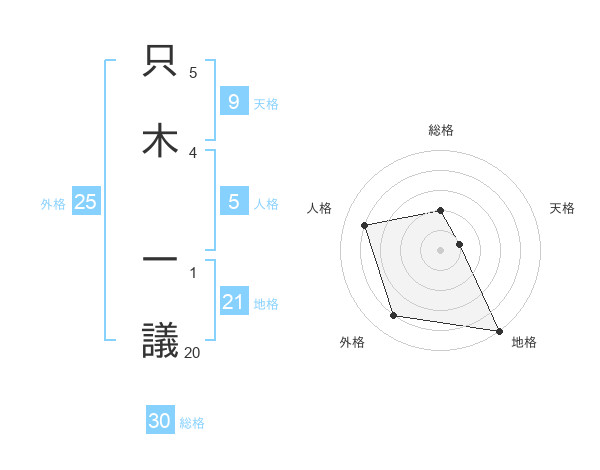 只木 一議さんの地格は21画の5点!