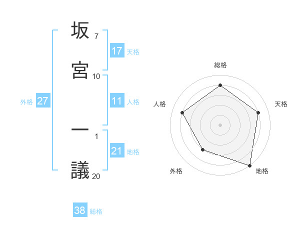 坂宮 一議さんの総格は38画の4点!