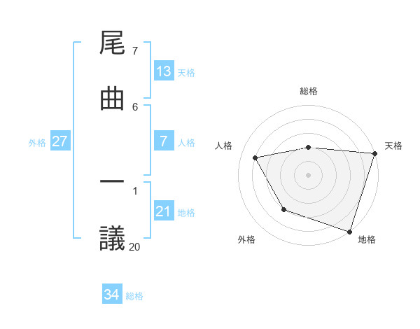 尾曲 一議さんの地格は21画の5点!