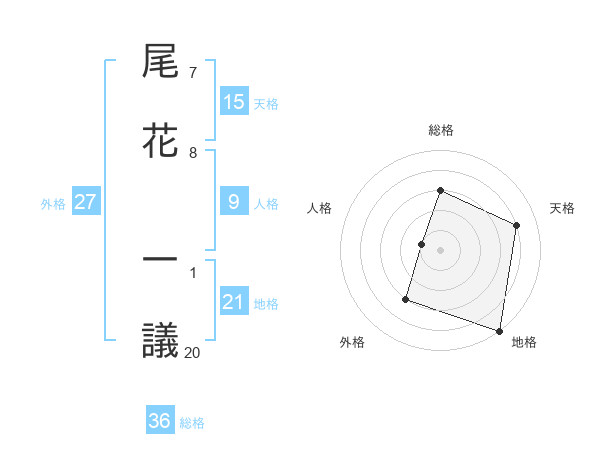 尾花 一議さんの天格は15画の4点!