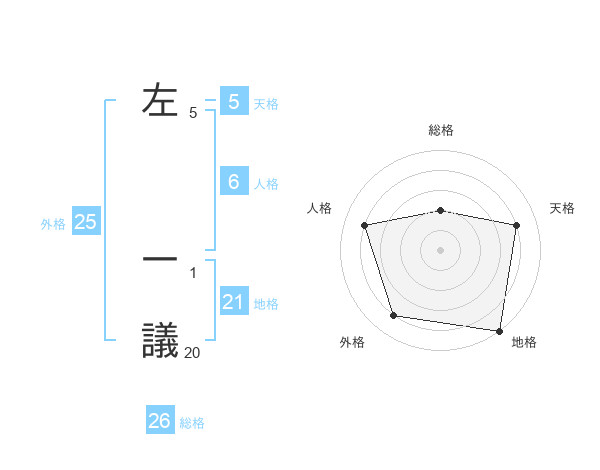 左 一議さんの総格は26画の2点!