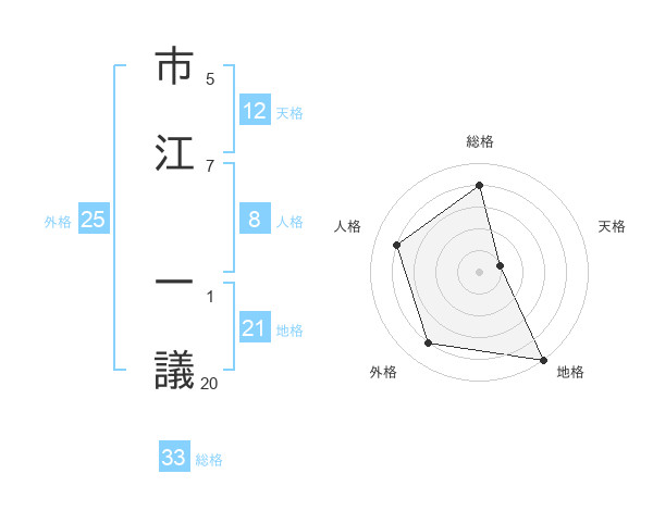市江 一議さんの総格は33画の4点!