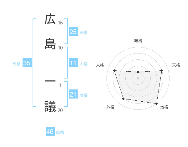 広島 一議さんの総格は46画の1点!