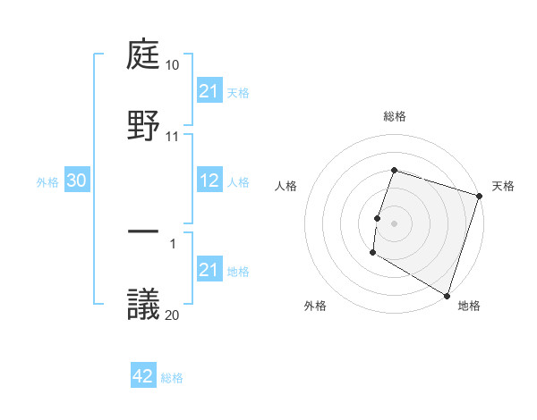庭野 一議さんの天格は21画の5点!
