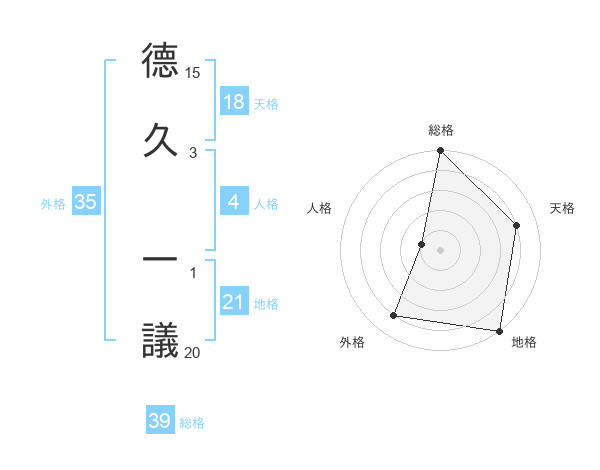 德久 一議さんの地格は21画の5点!