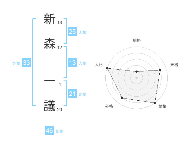 新森 一議さんの総格は46画の1点!