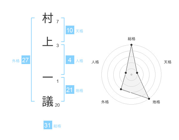 村上 一議さんの総格は31画の5点!