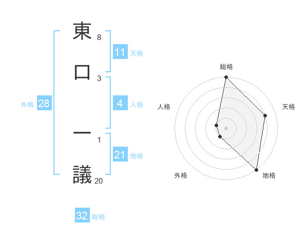 東口 一議さんの総格は32画の5点!