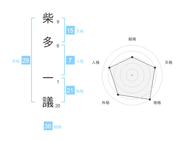 柴多 一議さんの地格は21画の5点!
