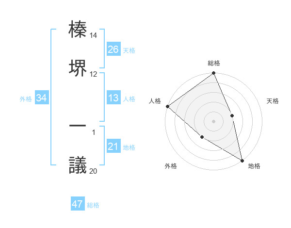榛堺 一議さんの総格は47画の5点!