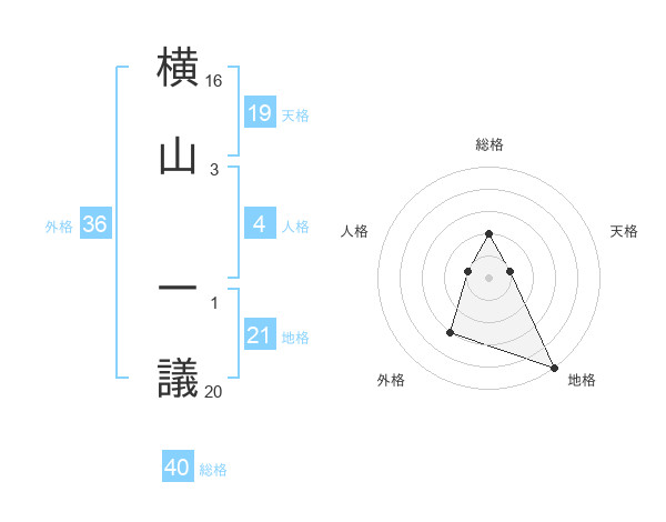 横山 一議さんの総格は40画の2点!