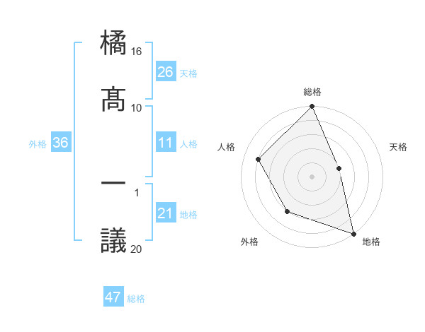 橘髙 一議さんの総格は47画の5点!