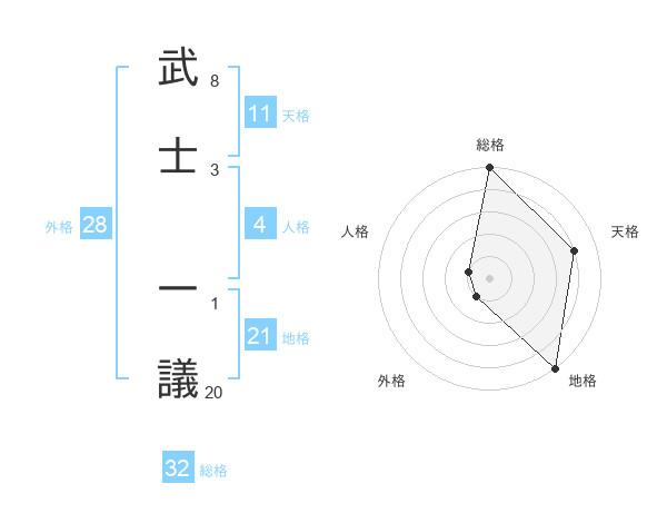 武士 一議さんの総格は32画の5点!
