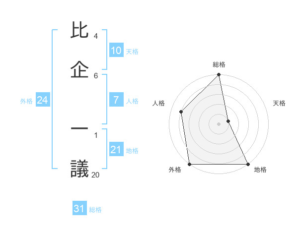 比企 一議さんの総格は31画の5点!