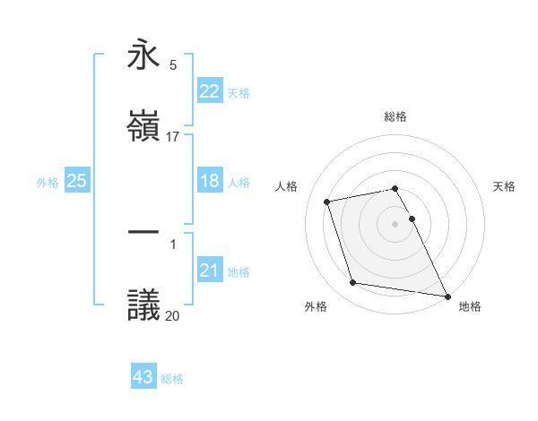 永嶺 一議さんを姓名の画数から五運を鑑定