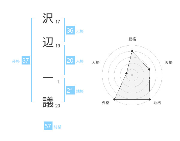 沢辺 一議さんを姓名の画数から五運を鑑定