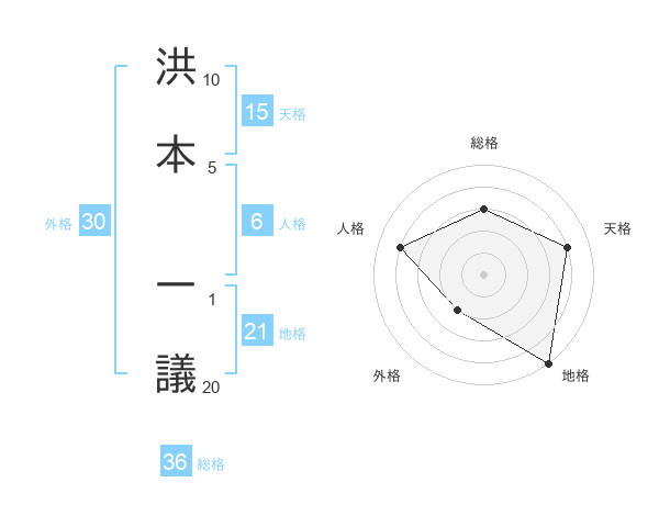 洪本 一議さんの地格は21画の5点!